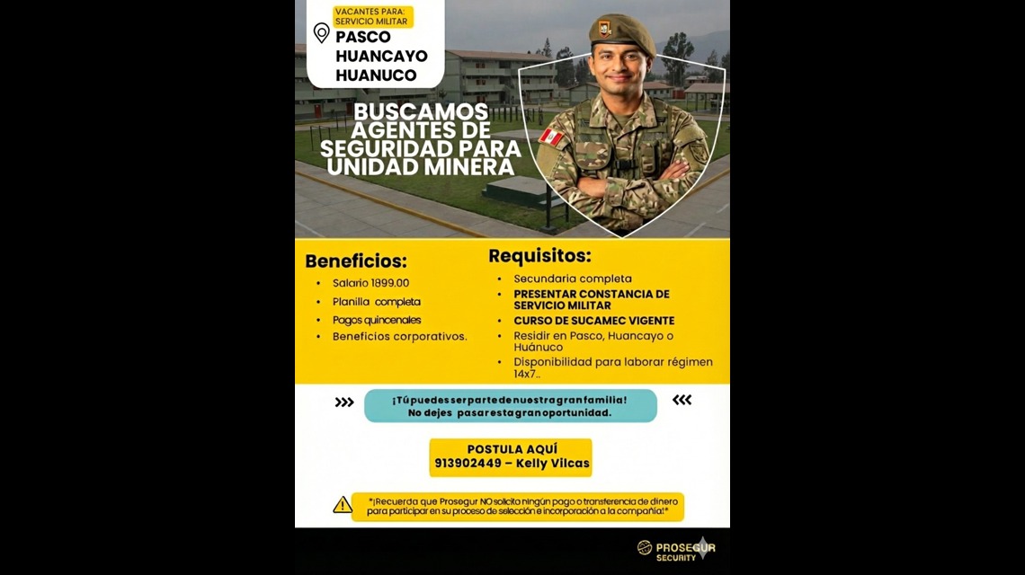 ¡BUSCAMOS AGENTES DE SEGURIDAD UNIDAD MINERA PASCO !